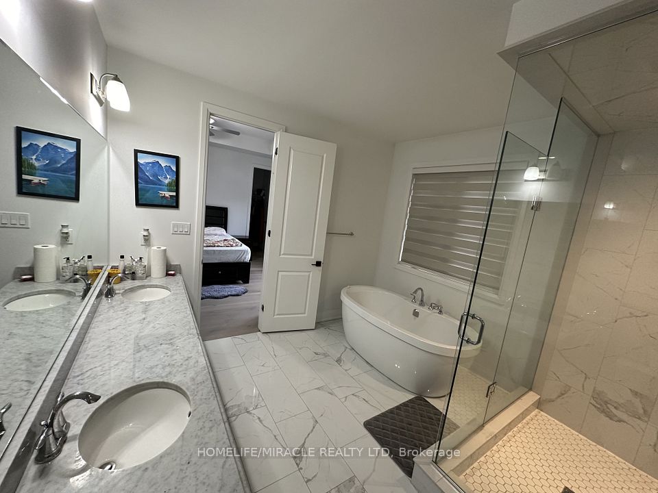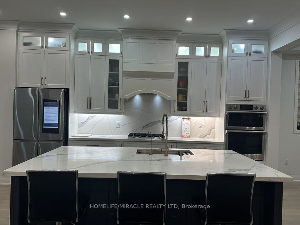 Welcome to this stunning 3 year old luxury 5 bedroom 3.5 bath home in Oakville's prestigious Joshua Meadows community, offering over 3100 sq ft of elegant living space, perfect for a professional couple or a growing family. Featuring 10 ft ceilings on the main floor and 9-ftceilings upstairs, this home boasts hardwood floors, porcelain tile, solid oak staircases ,custom 8 ft doors, pot lights throughout the main floor, and stylish crystal fixtures. The bright, open concept layout includes a welcome foyer, formal living and dining areas, a mudroom, and a spacious family room with fireplace. The chef-inspired kitchen showcase quartz countertops, a large centre island, custom cabinetry, inbuilt kitchen with high end appliances including a smart fridge on main floor, LED and under cabinet lighting. Upstairs offers 5 spacious bedrooms and 3 bathrooms, including a luxurious primary suite with his and hers closets and a spa like ensuite. Two bedrooms share a Jack & Jill bath. Convenient second floor laundry and zebra blinds throughout the windows. Backyard is fully hardscape, has no grass and is installed with a gazebo for enjoying together as a family. Enjoy excellent curb appeal, a PVC fenced backyard, garage with remote and smart home features. Ideally located near top schools, Sheridan college, Oakville Hospital, Go station. Quick access to Costco, Walmart, restaurants, Hwy 403, QEW and 407.