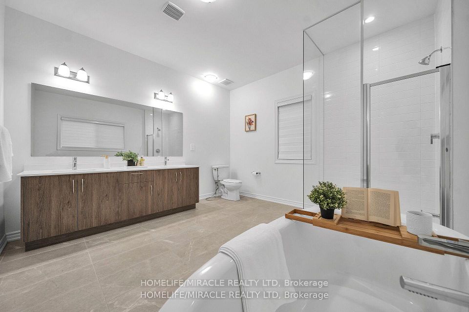 Absolutely Stunning, Brand New, Never-Lived-In Detached Home in One of Milton's Most Desirable Communities! This Premium 45 Ft Lot Boasts 3400 Sq Ft of Thoughtfully Designed Living Space Featuring 4 Spacious Bedrooms plus Den, 3.5 Bathrooms, and a Versatile Loft That Can Be Converted Into a 5th Bedroom or Home Office. Enjoy 9-Foot Ceilings on Both Floors, Separate Living and Dining Areas, and a Bright, Open-Concept Family Room Perfect for Entertaining. The Gourmet Kitchen is Equipped with Built-In Stainless Steel Appliances and Elegant Quartz Countertops. The Primary Suite Offers His and Her Walk-In Closets and a Luxurious Ensuite. An Additional Bedroom Also Includes a Walk-In Closet for Added Convenience. Premium Hardwood Flooring Throughout No Carpet in the Entire Home. Main Floor Laundry and Builder-Finished Side Entrance Provide Excellent Future Potential for a Basement Apartment or In-Law Suite. No Sidewalk Park Up to 4 Cars on the Driveway Plus 2 in the Garage. Surrounded by Upscale Homes and Located Close to Top-Rated Schools, Parks, Milton GO, Sherwood Community Centre, Hospital, Shopping, and Easy Access to Hwy 401 & 407. This Home Truly Combines Luxury, Space, and Location A Must See!pictures are virtually staged.