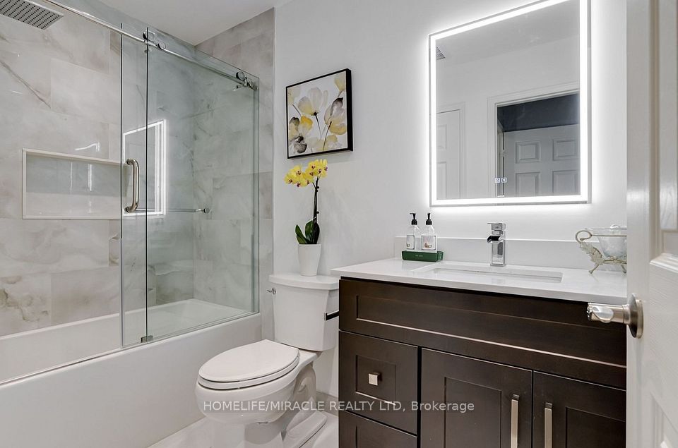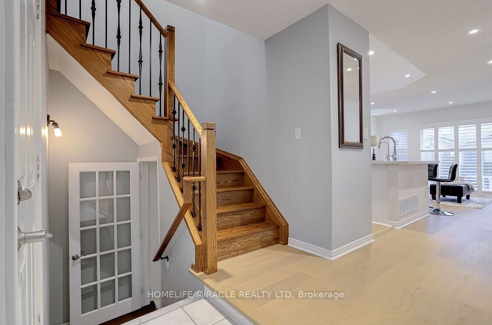 Welcome to this beautifully maintained 3+1 bedroom semi-detached home in the highly desirable Churchill Meadows community.Bright, inviting, and thoughtfully updated, this home offers a functional open-concept layout ideal for comfortable everyday living and entertaining. The main level features a spacious living area with elegant pot lights and engineered hardwood flooring, flowing seamlessly to the walk-out backyard. The updated kitchen combines style and practicality with quartz countertops, stainless steel appliances, a gas range, and a breakfast bar, creating the perfect space for cooking and gathering with family and friends. Upstairs, a versatile open-concept family room or den with high ceilings offers the perfect setting for a home office, reading lounge, or additional living space before leading into the bedrooms. Bathrooms throughout the home have been tastefully upgraded with modern finishes, including a sleek glass shower and quartz vanity. The fully finished basement expands the living space with a spacious bedroom, a modern bathroom, and a convenient kitchenette area, making it ideal for extended family, guests, or additional privacy. Additional features include interior access to the garage, an extended driveway offering extra parking, and a backyard with stamped concrete patio and storage shed. Located in a family-friendly neighbourhood just steps to schools, parks, community centres, and shopping, with easy access to Highways 407, 403, and 401, making commuting simple and convenient.