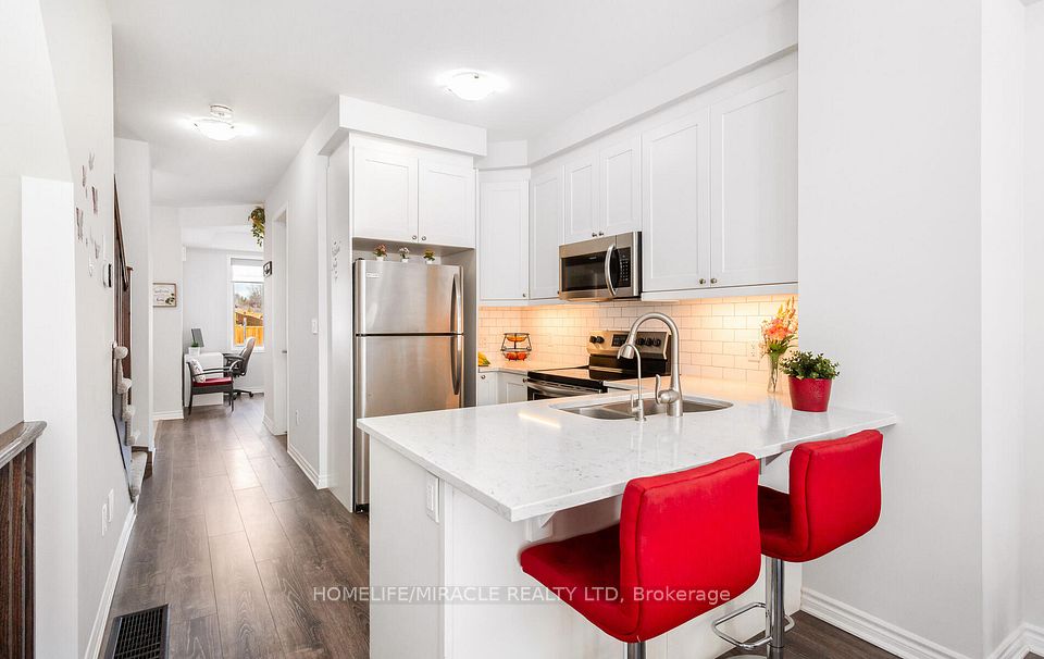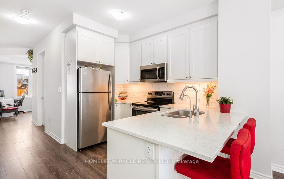 Welcome to this 2 storey Beautiful Townhome, 1600 sf of Stylish and Functional Living space.3 Beds, 2.5 Modern Bathrooms, Den or WFH Office on the main floor. Open concept Living with Natural sunlight and Walk-out to Balcony for Entertaining, overlooking the Park. Upgraded Kitchen with Steel and Quartz, comes with Breakfast Bar. Plenty of storage in the Garage and Basement. This Home also boasts an oversized 1.5 Car Garage with inside Entry to the home for Convenience. Located in the Prestigious River Mill Community, just minutes to Hwy 401 and Hwy 8. Proximity to park and a future school, walk to the Bus stop. Upgraded 200 amp Electrical panel.